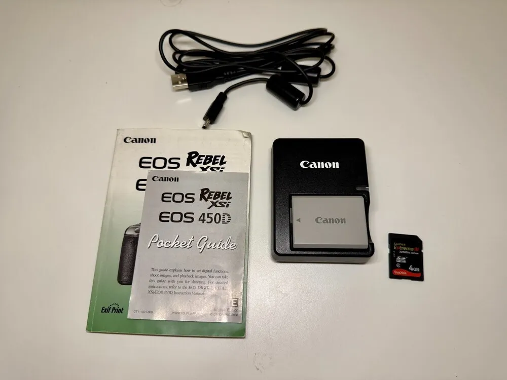 Connectivity options include USB 2.0 for data transfer, and the device supports SD/SDHC memory cards for storage. The camera body is compatible with Canon's extensive range of EF and EF-S lenses, enhancing creative possibilities. It also incorporates a built-in pop-up flash to assist in low-light conditions. The EOS 450D is powered by an LP-E5 rechargeable lithium-ion battery, offering reliable shooting duration.
