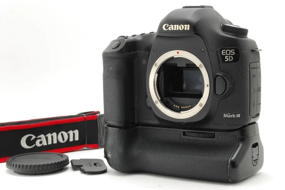 The Canon EOS 5D Mark III is a professional-grade full-frame digital SLR camera released in 2012. It features a 22.3-megapixel full-frame CMOS sensor that delivers high-resolution images with exceptional detail and low noise performance. The DIGIC 5+ image processor enables rapid image processing, superior noise reduction, and enhanced speed in continuous shooting up to 6 frames per second.