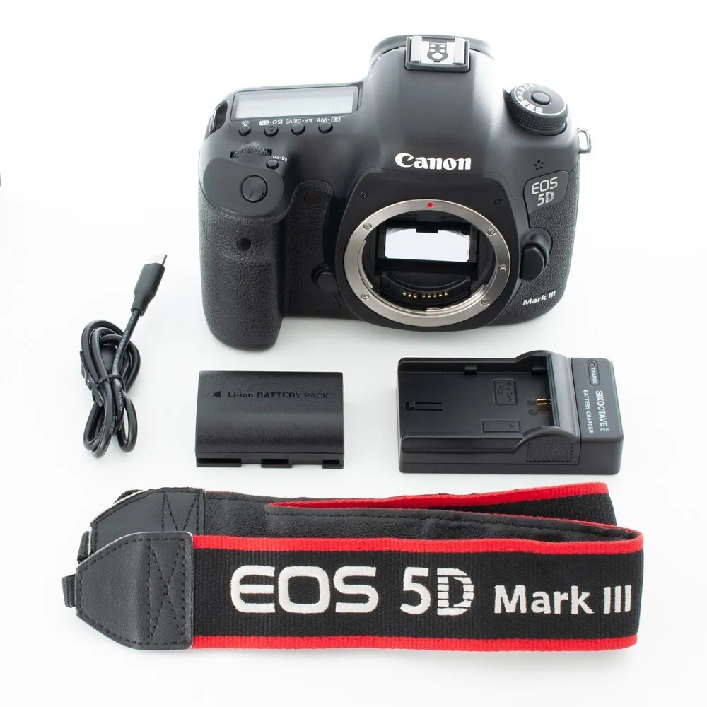 The Canon EOS 5D Mark III is a full-frame digital SLR camera released in 2012, designed with a 22.3-megapixel CMOS sensor that delivers high-resolution images with excellent color accuracy. It features the DIGIC 5+ image processor that enables fast image processing and improved noise control at high ISO levels. The camera supports a 61-point autofocus system providing superior tracking and focus precision, especially for moving subjects. It offers continuous shooting speeds up to 6 frames per second, suitable for capturing dynamic scenes. Video capabilities include Full HD 1080p recording at multiple frame rates, offering professional video output options. The robust magnesium alloy body ensures durability and weather sealing for challenging shooting conditions.
