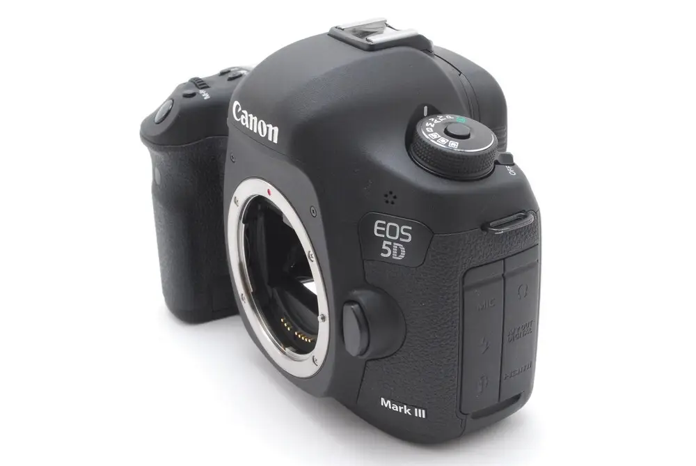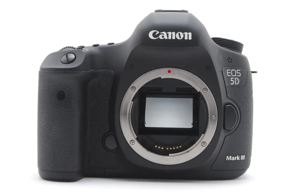 The Canon EOS 5D Mark III is a professional-grade full-frame DSLR camera released in 2012. It features a 22.3 megapixel CMOS sensor that delivers high-resolution images with excellent detail reproduction and low noise levels. The camera incorporates the DIGIC 5+ image processor, enhancing overall performance and enabling continuous shooting at up to 6 frames per second. It offers a native ISO range of 100 to 25600, expandable to 50–102400, for exceptional versatility in various lighting conditions. The 61-point autofocus system provides precise focus tracking and accuracy, particularly useful for fast-moving subjects. In addition, the video capabilities include Full HD 1080p recording at multiple frame rates with manual exposure control.