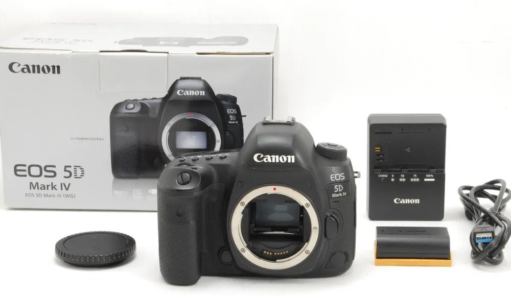 The Canon EOS 5D Mark IV is a professional full-frame DSLR camera introduced in 2016, featuring a 30.4 MP CMOS sensor and the DIGIC 6+ image processor which delivers high-resolution images and fast processing speeds. It supports 4K video recording at 30fps, allowing videographers to capture high-quality footage with efficient compression. The camera's autofocus system employs 61 AF points with 41 cross-type sensors, providing precise and fast focusing for various shooting conditions. Built-in Wi-Fi, NFC, and GPS connectivity enable easy sharing and geotagging of photos. The body is constructed with magnesium alloy and weather-sealed for enhanced durability and resistance to harsh environments. Additionally, the camera offers dual card slots (CF and SD), providing flexible storage options for professional workflows.