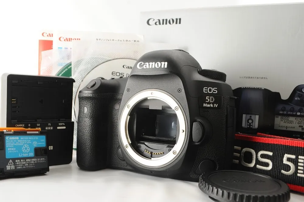 The Canon EOS 5D Mark IV is a professional-grade full-frame DSLR camera introduced in 2016, known for its robust construction and advanced image processing capabilities. It features a 30.4-megapixel full-frame CMOS sensor paired with the DIGIC 6+ image processor, enabling high-resolution image capture with excellent low-light performance. The camera offers a wide ISO range of 100-32000 (expandable to 50-102400) for versatile shooting in various lighting conditions. Autofocus is managed by a 61-point AF system with 41 cross-type points, providing fast and accurate subject tracking. The EOS 5D Mark IV supports 4K video recording at 30p and Full HD at 60p, catering to professional videographers. Additionally, it integrates built-in Wi-Fi, NFC, and GPS for enhanced connectivity and location tagging.