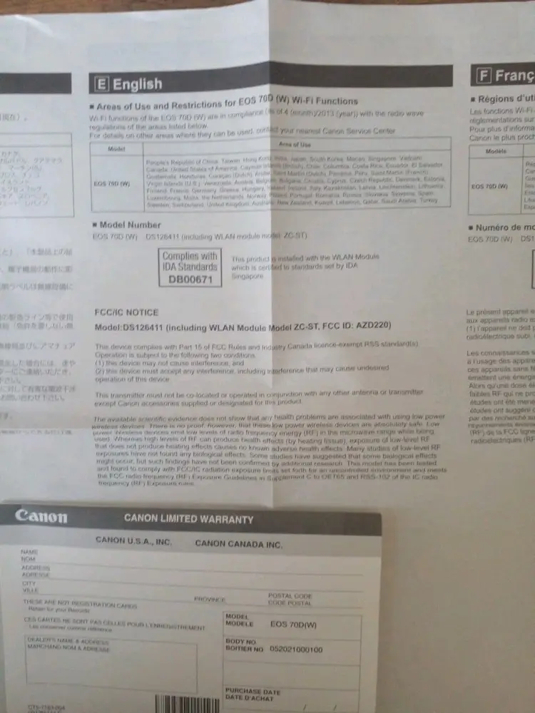 Model | Canon EOS 70D |