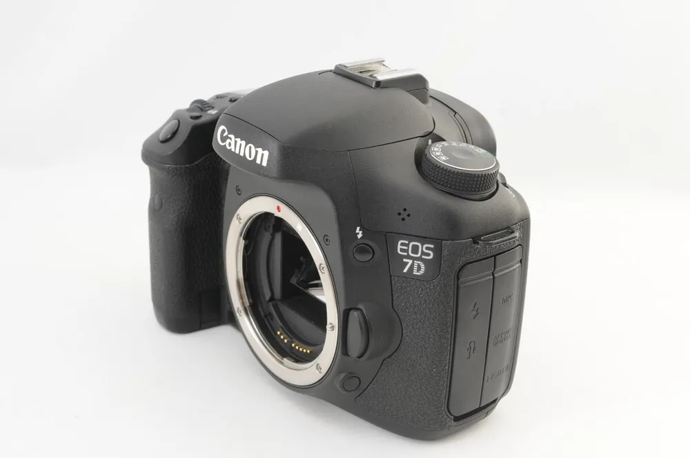 The Canon EOS 7D is a professional-grade digital SLR camera introduced in 2009, featuring an 18.0 Megapixel APS-C CMOS sensor that delivers high resolution and detailed images. It employs the DIGIC 4 image processor which enables high-speed performance and image processing capabilities. The camera supports continuous shooting at 8 frames per second, ideal for action and sports photography. It is equipped with a 19-point autofocus system enhancing precision in focusing under various conditions. The ISO sensitivity ranges from 100 to 6400 (expandable to 12800), providing flexibility in different lighting environments. Additionally, the EOS 7D offers Full HD 1080p video recording with manual control over exposure settings ensuring professional video capabilities.