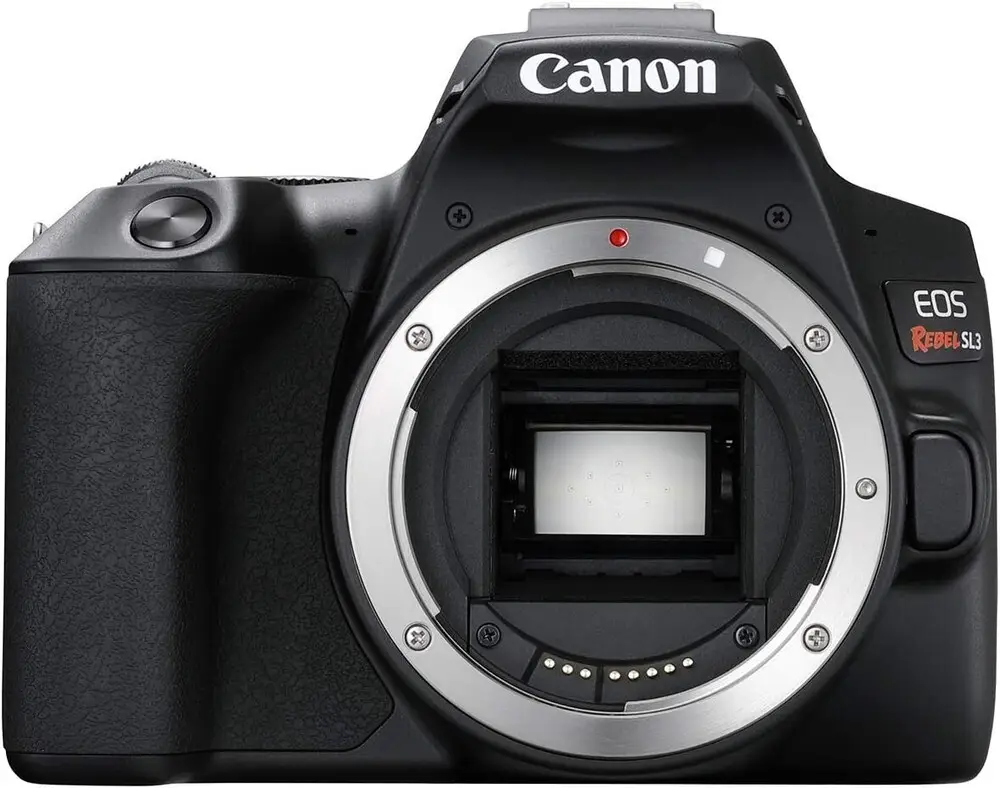 The Canon EOS Rebel SL3 is a compact and lightweight DSLR boasting a 24.1-megapixel APS-C CMOS sensor paired with the powerful DIGIC 8 image processor. It supports Dual Pixel CMOS autofocus for swift and precise focusing in both stills and 4K video capture. The camera features a vari-angle touchscreen LCD that allows versatile shooting angles and easy menu navigation. It includes built-in Wi-Fi and Bluetooth connectivity enabling seamless image transfer and remote control. Video capabilities include 4K UHD recording at 24p, Full HD at up to 60fps, and HD at 720p for high-quality footage. The body integrates an optical pentamirror viewfinder and provides an ISO range of 100-25600, expandable to 51200 for low-light shooting.