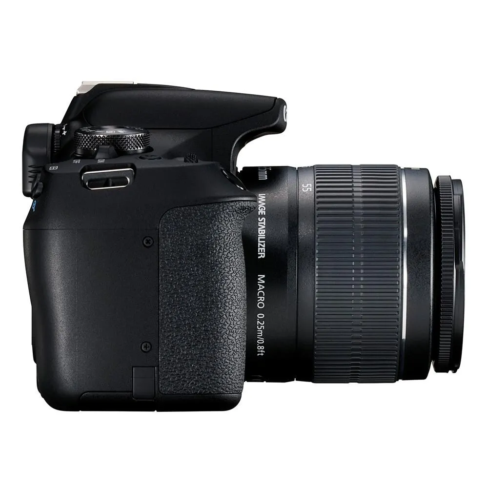 The DSLR supports Wi-Fi, NFC, and Bluetooth connectivity for seamless image sharing and remote control via Canon's Camera Connect app. It is compatible with Canon EF and EF-S lenses, offering versatility in lens options. The camera features continuous shooting at up to 6 frames per second, suitable for capturing action shots. Its optical pentamirror viewfinder provides approximately 95% frame coverage, aiding in precise composition. The body design incorporates ergonomic grips and an easy-to-navigate user interface suitable for both beginners and enthusiast photographers. Additionally, the built-in flash and external flash support allow greater lighting control.