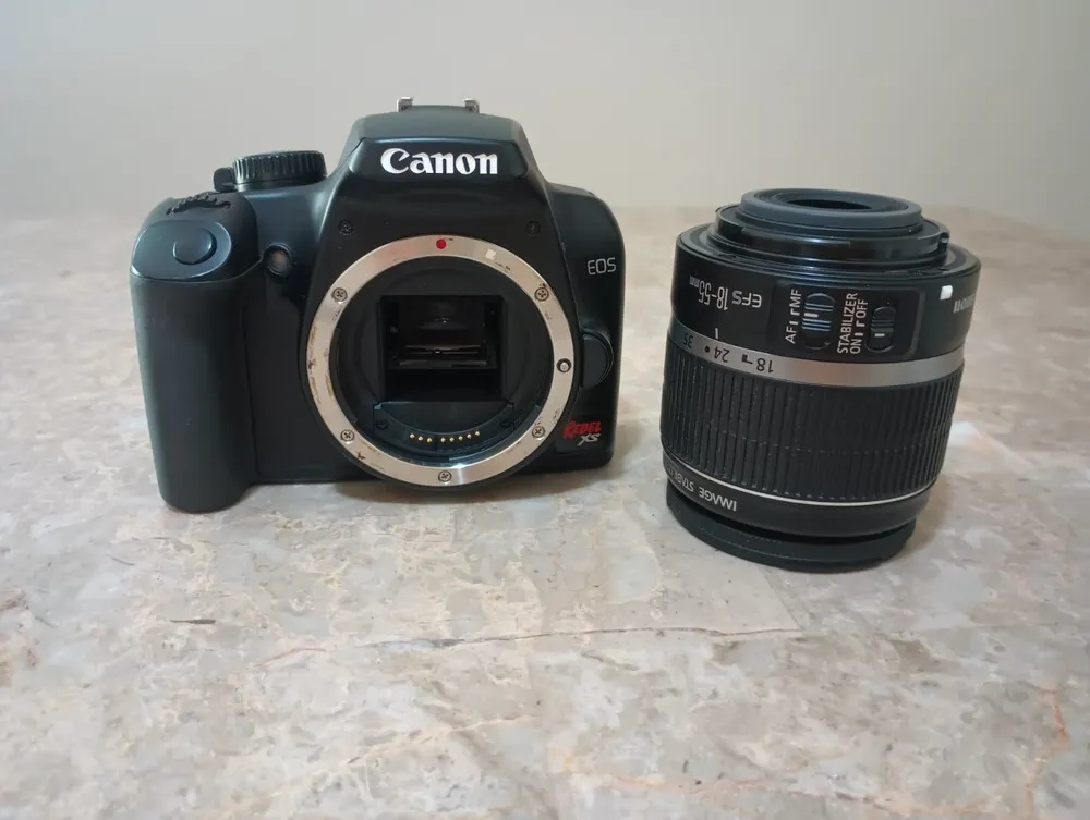The Canon Rebel XS, also known as the EOS 1000D, is an entry-level digital single-lens reflex (DSLR) camera released in 2007. It features a 10.1 megapixel APS-C CMOS sensor, delivering high-resolution images with classic Canon color reproduction. The camera supports Canon's EF and EF-S lenses, providing versatility in photography. It has a DIGIC III image processor that offers decent image quality and performance for beginners. The autofocus system includes 7 AF points and offers good accuracy for its class. The Rebel XS features a 2.5-inch LCD screen for image review and menu navigation, aiming for ease of use for newcomers to DSLR photography.
