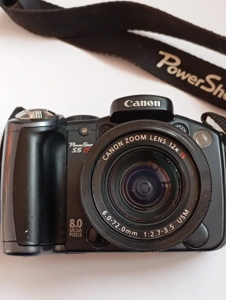 The Canon Powershot S5 IS is a 8.0-megapixel digital camera released in 2006, designed for advanced amateur photographers. It features a 12x optical zoom lens with image stabilization to reduce blur caused by hand movements. The camera is equipped with a 1/2.5-inch CCD sensor, enabling good image quality for its class and era. It supports RAW format shooting for greater control in post-processing. The camera offers a vari-angle 2.5-inch LCD screen for flexible shooting angles and a built-in electronic viewfinder. Connectivity includes USB 2.0 for fast data transfer and support for SD memory cards for storage expansion.