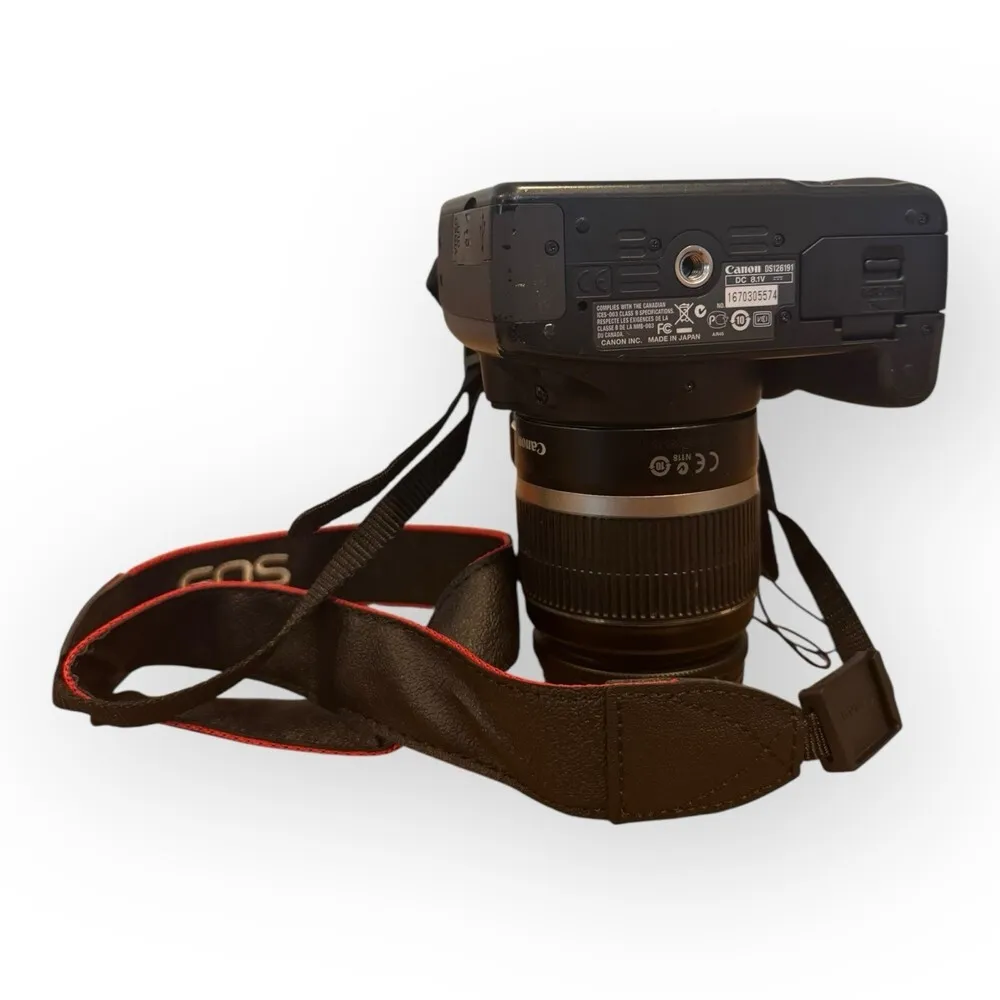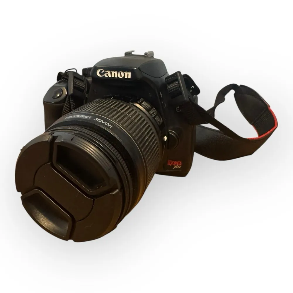 The Canon Rebel XS, also known as the EOS 1000D, is an entry-level digital single-lens reflex camera introduced in 2007. It features a 10.1-megapixel APS-C CMOS sensor that delivers high-resolution images with excellent color fidelity. The camera uses Canon's DIGIC III image processor, ensuring fast operation and improved image quality. Compatible with Canon EF and EF-S lenses, it offers versatility for various photography styles. It provides a 2.5-inch LCD screen for image preview and menu navigation, supporting live view mode for easier framing. The camera supports ISO sensitivity ranging from 100 to 1600, expandable to 3200, allowing for better performance in varied lighting conditions.