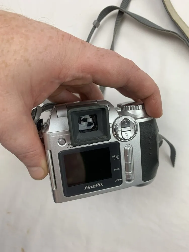 This camera uses xD-Picture Card for image storage, which was a common format for Fujifilm cameras in the early 2000s.