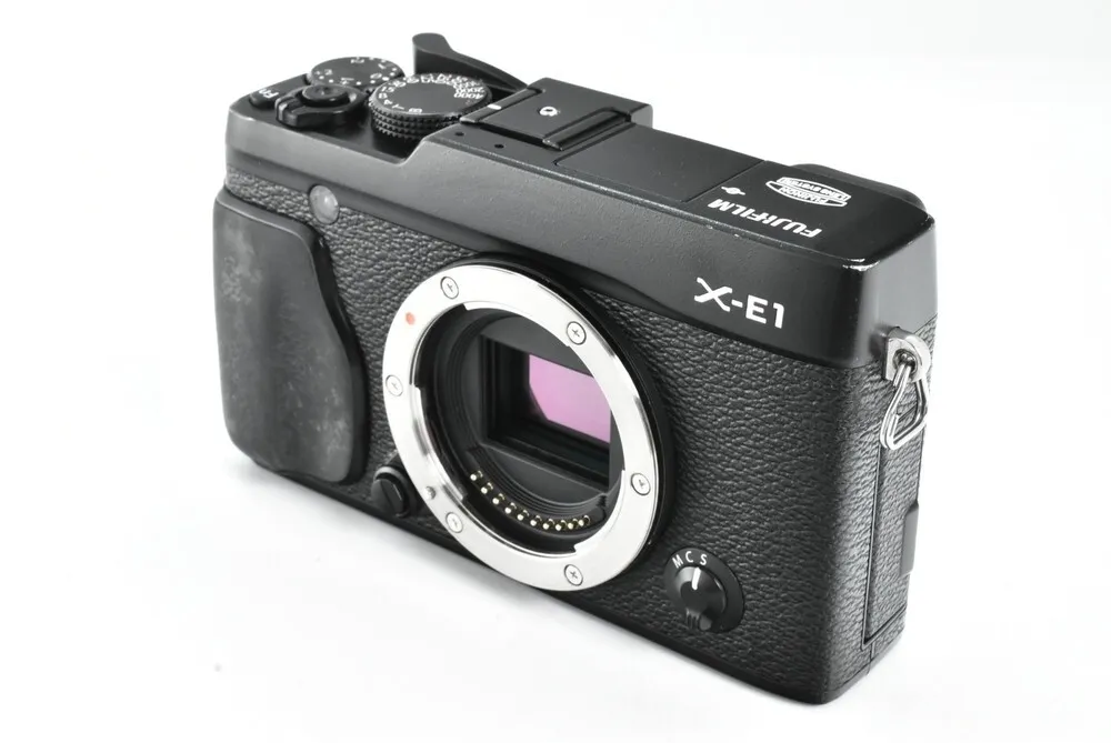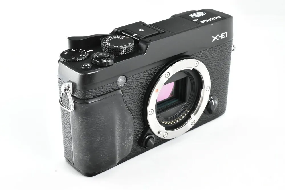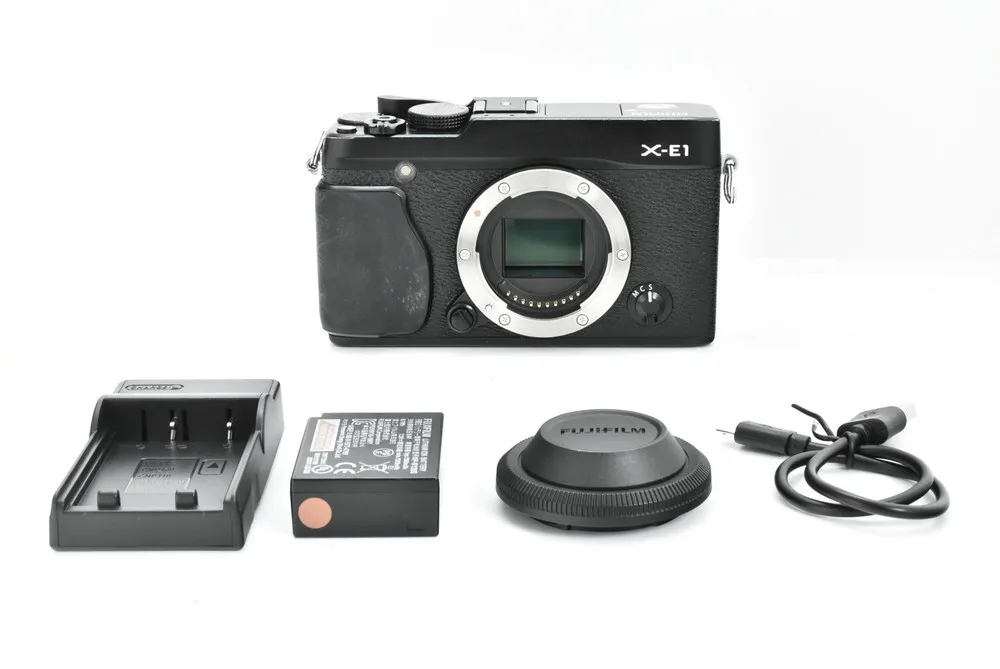 The Fujifilm X-E1 is a mirrorless digital camera featuring the APS-C X-Trans CMOS sensor with 16.3 megapixels, providing high-resolution image quality. It utilizes the Fujifilm X-mount for interchangeable lenses, supporting a wide range of high-performance optics. The camera operates with an EXR Processor Pro for fast processing speed and enhanced image detail. It offers an electronic viewfinder (EVF) with 2.36 million dots resolution, delivering clear and precise framing. The X-E1 supports ISO sensitivity from 100 to 25600, allowing flexible shooting under various lighting conditions. Connectivity options include HDMI output and a hot shoe for external flash units, complementing its advanced exposure controls.
