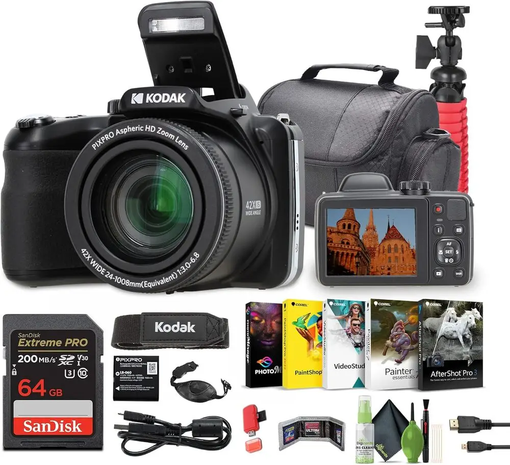 The AZ425 stands out with its user-friendly interface, making it an ideal choice for beginners. It offers a versatile zoom range that adapts well to various shooting scenarios. The compact and lightweight design enhances portability and ease of use. Its rechargeable battery system is convenient for frequent travel. The camera supports multiple shooting modes catering to different photographic needs. Additionally, it is cost-effective, appealing to budget-conscious consumers.