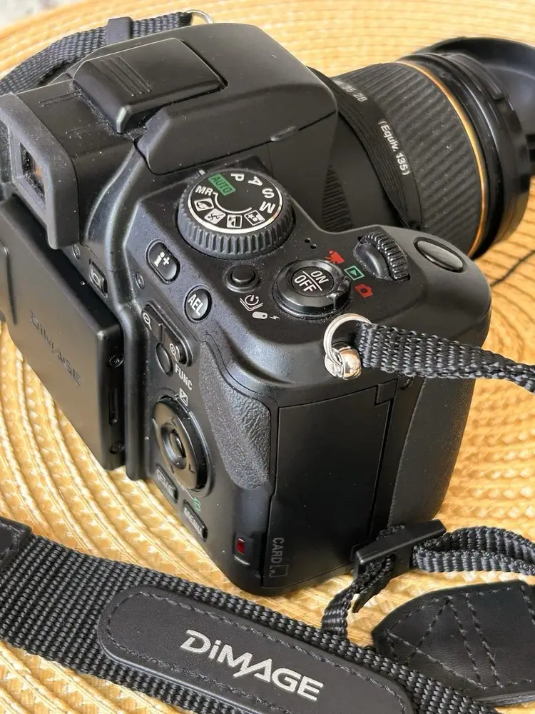 The Konica Minolta DiMAGE A200 is a digital camera featuring an 8.1-megapixel CCD sensor that delivers high-resolution images ideal for amateur and enthusiast photographers. It employs a 7x optical zoom lens with a focal range of 35-245mm, providing versatile shooting options from wide-angle to telephoto. The camera supports various shooting modes and includes a manual control system for exposure, focus, and white balance settings, allowing precise image capture. It incorporates a 2.5-inch LCD screen for image preview and composition, along with an electronic viewfinder for shooting in bright light environments. The DiMAGE A200 supports both JPEG and RAW image formats, giving users flexibility in post-processing. Powered by AA batteries, the camera is portable and suitable for travel and outdoor photography.