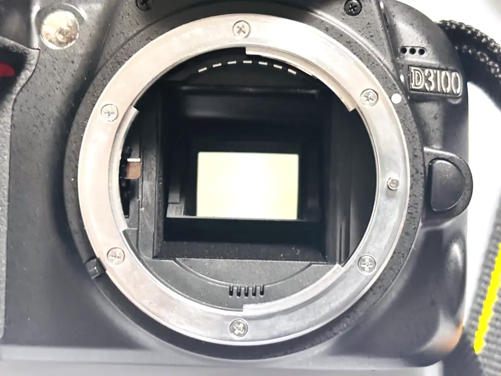 The Nikon D3100 features a DX-format CMOS sensor measuring approximately 23.1 x 15.4 mm.