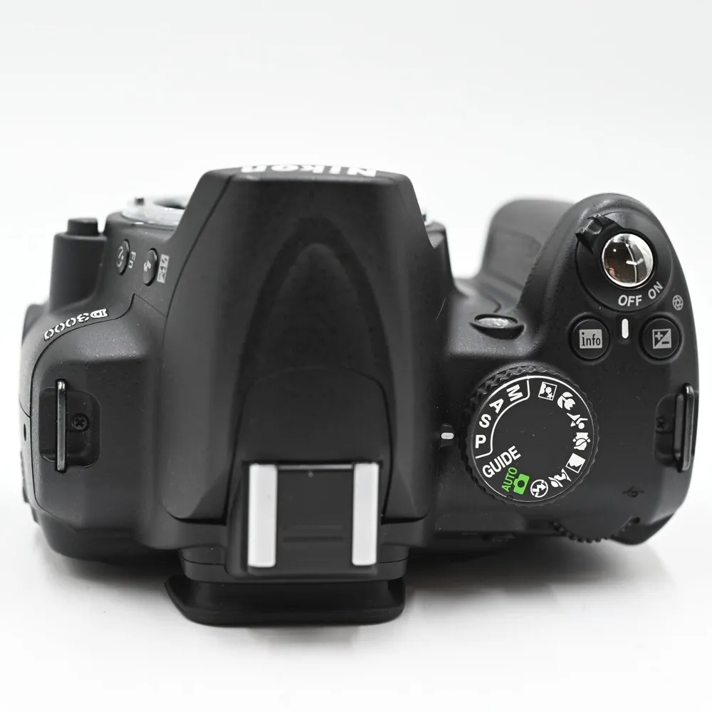 The Nikon D3300 is a 24.2-megapixel DSLR camera featuring a CMOS APS-C sized sensor that delivers high-resolution images with excellent detail and low noise. It utilizes Nikon's EXPEED 4 image processor, enhancing processing speed and image quality while improving power consumption. The camera supports an ISO range of 100-12800, expandable up to 25600, allowing versatile performance across various lighting conditions. It offers Full HD 1080p video recording at multiple frame rates including 60p, 50p, 30p, 25p, and 24p, providing smooth cinematic video capture. The D3300 includes an 11-point autofocus system with a 3D tracking feature, ensuring accurate and fast focusing performance. Additionally, it incorporates a 3-inch LCD screen with 921,000 dots resolution for clear image preview and menu navigation.