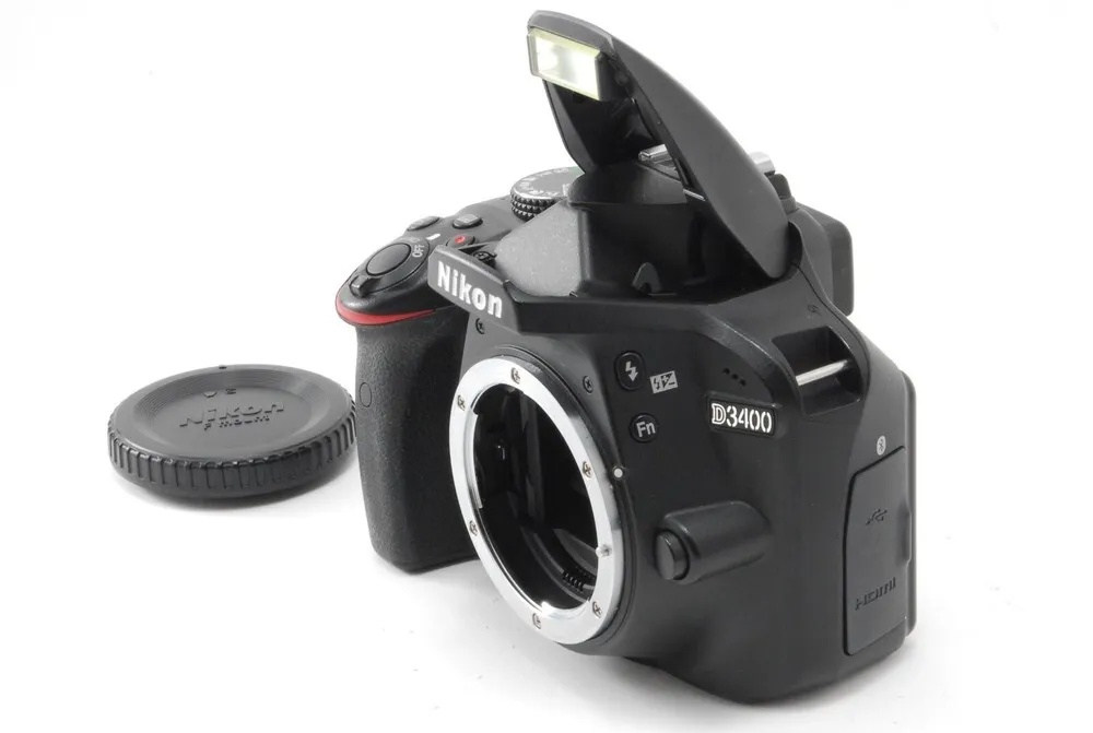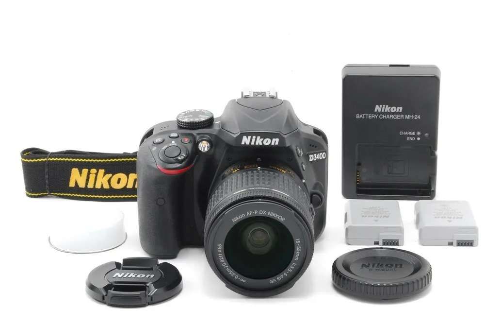 The Nikon D3400 is a digital single-lens reflex (DSLR) camera released in 2016, designed for entry-level photographers. It features a 24.2-megapixel DX-format CMOS sensor that captures high-resolution images with excellent detail and low noise. The camera uses Nikon's EXPEED 4 image-processing engine, which enhances overall speed, image quality, and battery efficiency. It supports Nikon F-mount lenses, enabling a wide range of compatible glass options for diverse shooting needs. The D3400 offers 5 frames per second continuous shooting speed and Full HD 1080p video recording capabilities. Additionally, it includes built-in Bluetooth for seamless image transfer to smart devices.