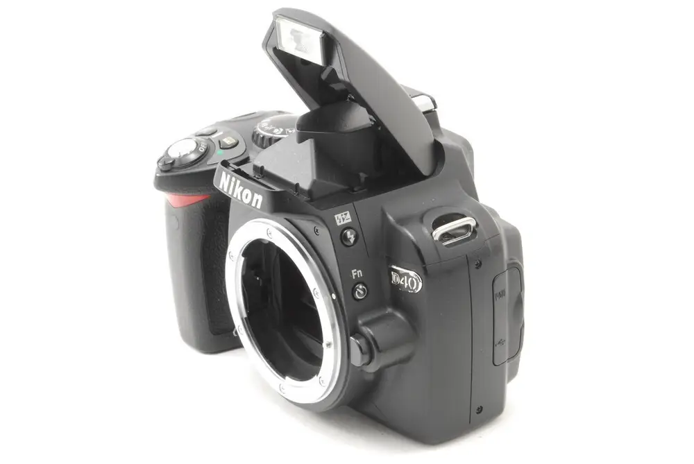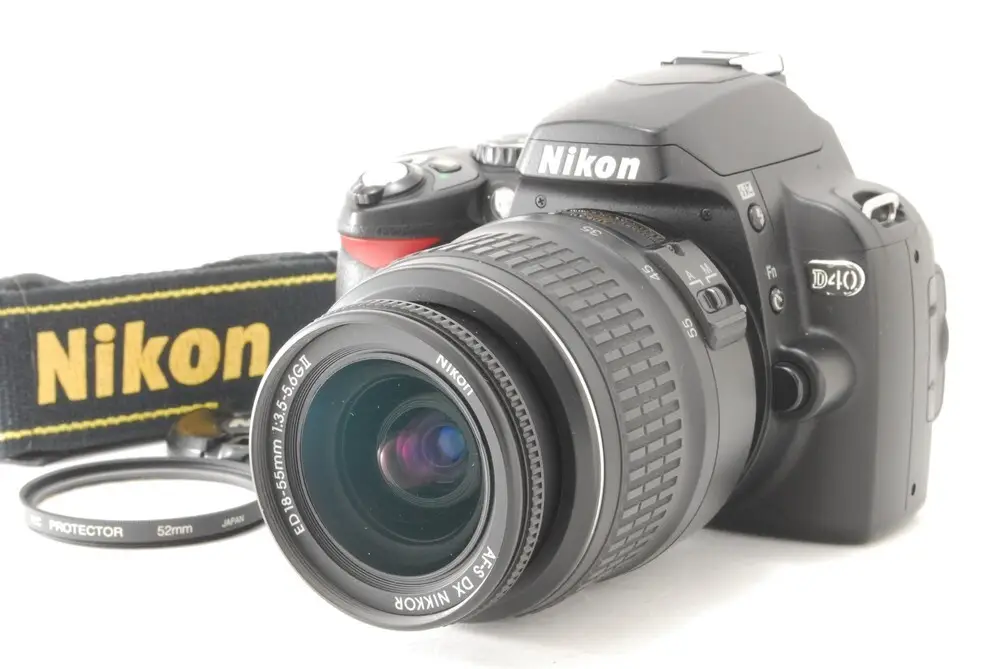 The Nikon D40 is a compact and lightweight entry-level digital single-lens reflex camera introduced in 2006. It features a 6.1-megapixel DX-format CCD sensor that delivers high-quality images with good color accuracy and detail. The camera is powered by Nikon's EXPEED image processor, which enables efficient image processing and improved performance. The D40 supports Nikon F-mount lenses, giving users a broad selection of compatible optics from Nikon and third-party manufacturers. The camera has a 2.5-inch rear LCD screen for image preview and menu navigation. It provides ISO sensitivity ranging from 200 to 1600, with an option to extend to ISO 3200, allowing for flexible shooting in various lighting conditions.