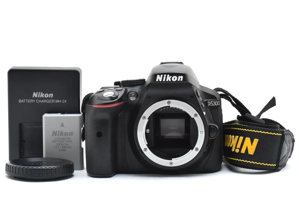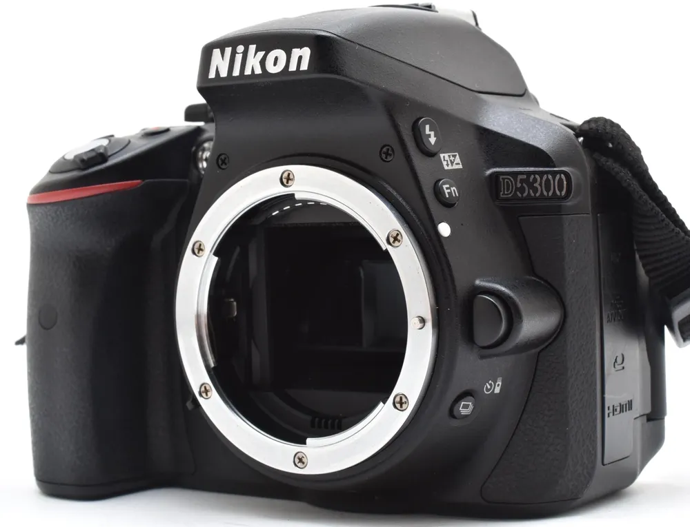 The Nikon D5300 is a 24.2-megapixel DSLR camera launched in 2013, featuring a DX-format CMOS sensor without an optical low-pass filter to provide sharper images. It utilizes the EXPEED 4 image-processing engine, delivering faster processing speeds and improved noise reduction. The camera supports full HD 1080p video recording at various frame rates and incorporates built-in Wi-Fi and GPS connectivity for effortless sharing and location tagging. An articulated 3.2-inch LCD screen with approximately 1.04 million dots allows flexible angle shooting and intuitive touch controls. The D5300 supports ISO ranges from 100 to 12800, extendable up to 25600, ensuring versatile performance in low-light conditions.