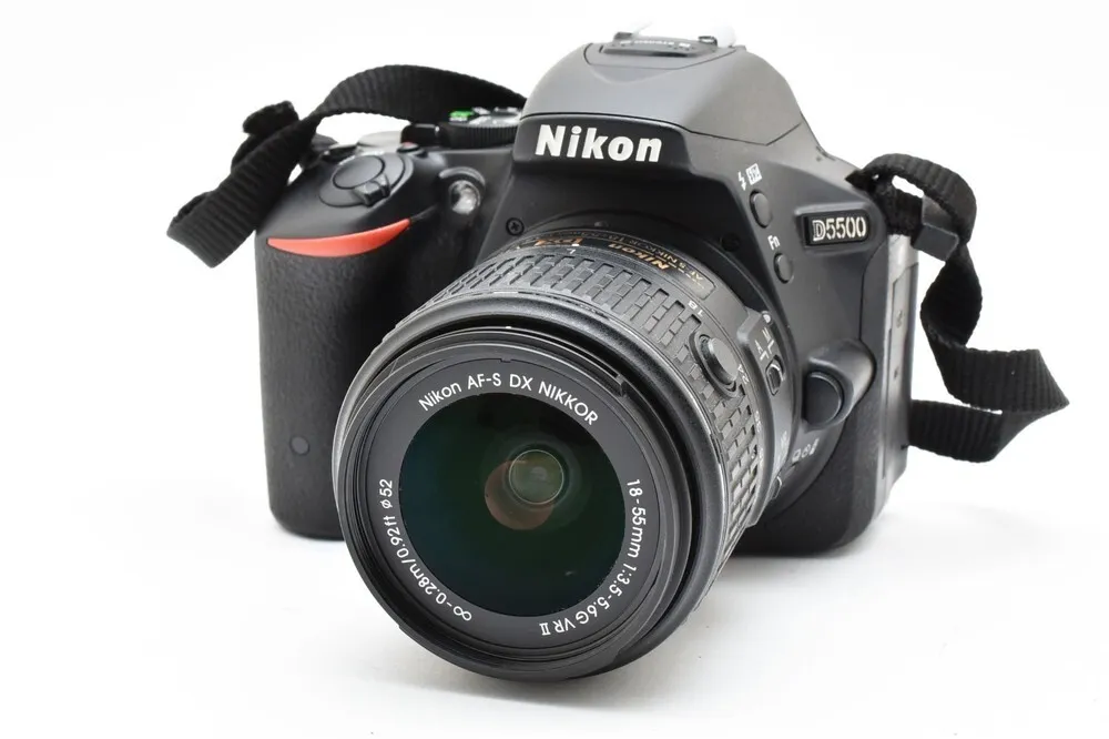 The Nikon D5500 is a compact DSLR camera released in 2015 featuring a 24.2 MP APS-C CMOS sensor that delivers high-resolution still images with excellent detail. It utilizes the EXPEED 4 image processor, which enhances image quality and provides improved noise reduction even at higher ISO levels. The camera supports an ISO range of 100-25600, allowing versatility in various lighting conditions. It features a 3.2-inch vari-angle touchscreen LCD for flexible shooting angles and intuitive control. The D5500 offers full HD 1080p video recording at multiple frame rates, catering to videographers. Additionally, built-in Wi-Fi connectivity enables easy sharing and remote control without the need for an external adapter.