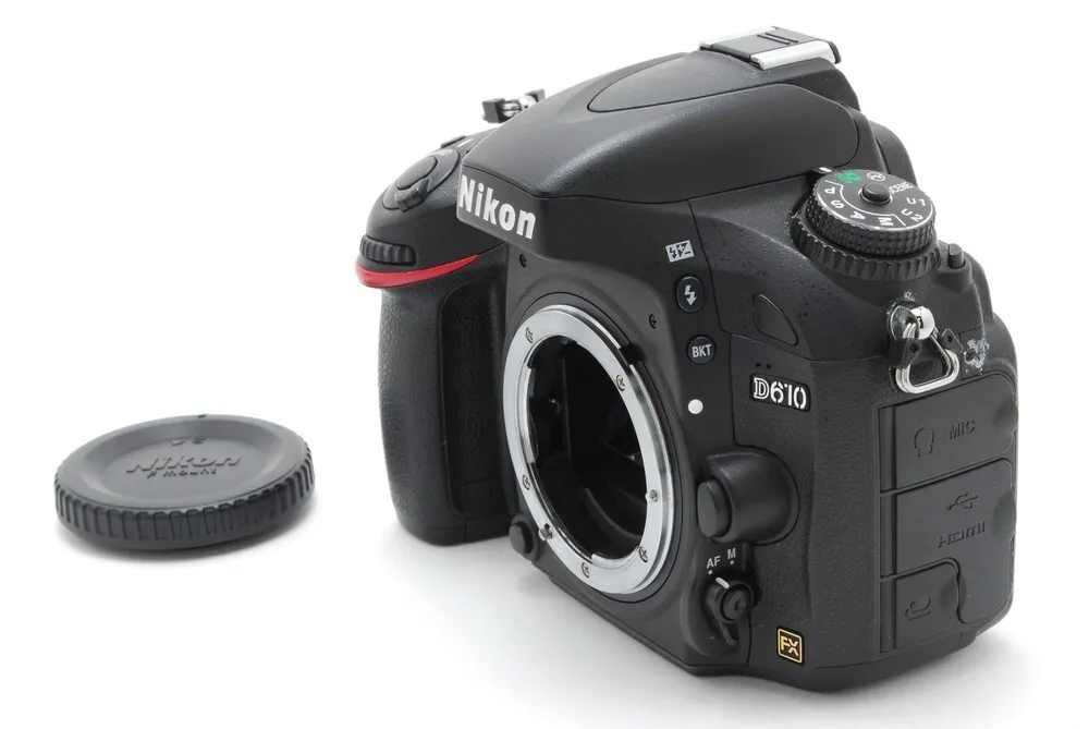 The Nikon D610 is a full-frame DSLR camera featuring a 24.3-megapixel FX-format CMOS sensor, delivering high-resolution images with excellent detail. It incorporates the EXPEED 3 image-processing engine for faster operation, enhanced noise reduction, and vibrant color reproduction. The camera offers a 39-point autofocus system with 9 cross-type sensors for precise and fast focusing across the frame. With ISO sensitivity from 100 to 6400 (expandable to 50–25600), the D610 performs well in diverse lighting conditions. The model supports 6 frames per second continuous shooting, making it suitable for capturing fast-moving subjects. Full HD 1080p video recording at multiple frame rates is available, with built-in stereo microphones for sound capture.