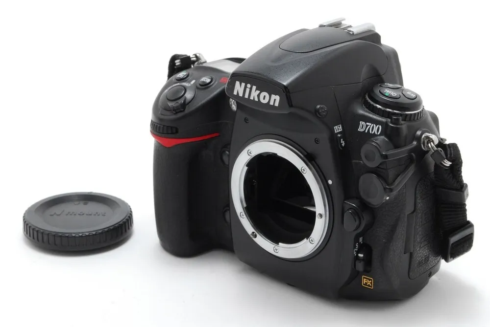 The Nikon D700 is a full-frame DSLR released in 2008, featuring a 12.1-megapixel FX-format CMOS sensor that allows for impressive image quality and low-light performance. It is equipped with Nikon's EXPEED image processor, enhancing its noise reduction and processing speed. The camera utilizes a 51-point autofocus system, offering precise focus capabilities suitable for both stills and video. The D700 supports ISO sensitivity up to 25600, enabling exceptional performance in diverse lighting conditions. It offers a continuous shooting speed of up to 5 frames per second, with an optional 8 fps high-speed mode using the battery grip. Additionally, the robust magnesium alloy body provides weather sealing for enhanced durability in challenging environments.