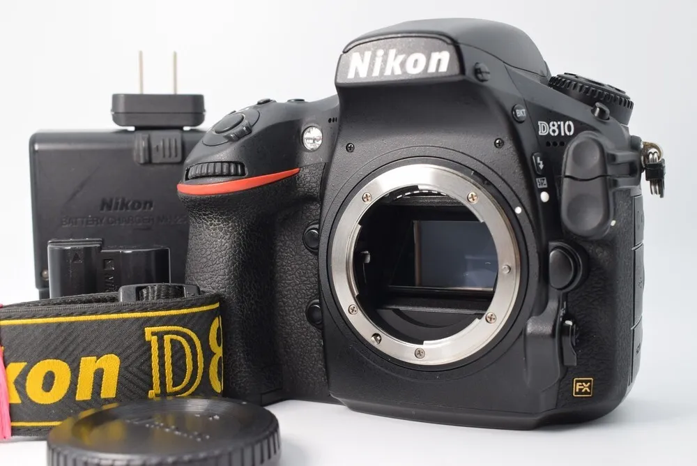 The Nikon D810 is a professional-grade full-frame DSLR camera featuring a 36.3-megapixel FX-format CMOS sensor without an optical low-pass filter, enabling extremely high-resolution image capture. It is powered by the EXPEED 4 image processing engine, which improves speed and noise reduction capabilities. The camera offers an ISO sensitivity range of 64-12,800, expandable down to ISO 32 and up to ISO 51,200, enabling excellent performance in varying lighting conditions. It supports continuous shooting at up to 5 frames per second and full HD 1080p video recording at multiple frame rates. The 51-point autofocus system with 15 cross-type sensors provides precise focus tracking, ideal for action and portrait photography. Additionally, the D810 comes with a 3.2-inch high-resolution LCD screen and robust build quality with weather sealing for durability.