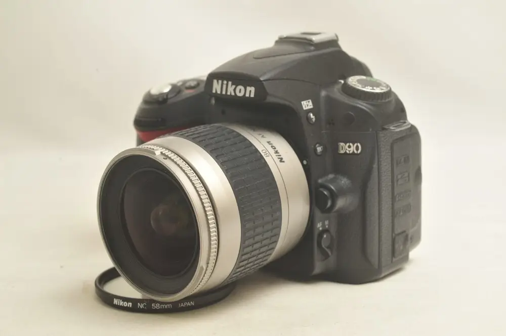 The Nikon D90 is a 12.3-megapixel DX-format DSLR camera released in 2008, featuring a CMOS sensor with an effective pixel count of 12.3 million pixels. The camera offers a Nikon F-mount lens system, providing extensive compatibility with Nikon lenses. It comes equipped with a 3-inch LCD screen and supports live view shooting, allowing photographers to compose shots via the LCD display. The D90 incorporates a 11-point autofocus system for accurate focusing performance and delivers an ISO sensitivity range from 200 to 3200, expandable up to 6400. The camera supports both JPEG and RAW image formats, alongside 720p HD video recording, a first for Nikon DSLRs at its time of release.