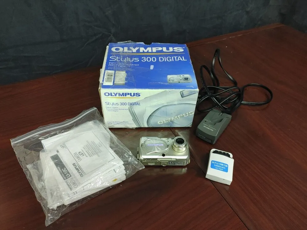 The Olympus Stylus 300 Digital is a compact point-and-shoot digital camera featuring a 3.2-megapixel CCD sensor. It offers a fixed 35mm equivalent lens with a maximum aperture of f/3.5, suitable for everyday photography. The camera includes a 2.5x optical zoom and supports JPEG image format with basic editing capabilities. It has a 1.8-inch LCD screen for framing and reviewing images with reasonable clarity. Powered by 2 AA batteries, it emphasizes portability and ease of use for casual users. The camera supports USB connectivity for file transfer to computers.