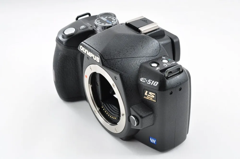 The E-510 features a 2.5-inch articulating LCD screen for flexible viewing angles.
