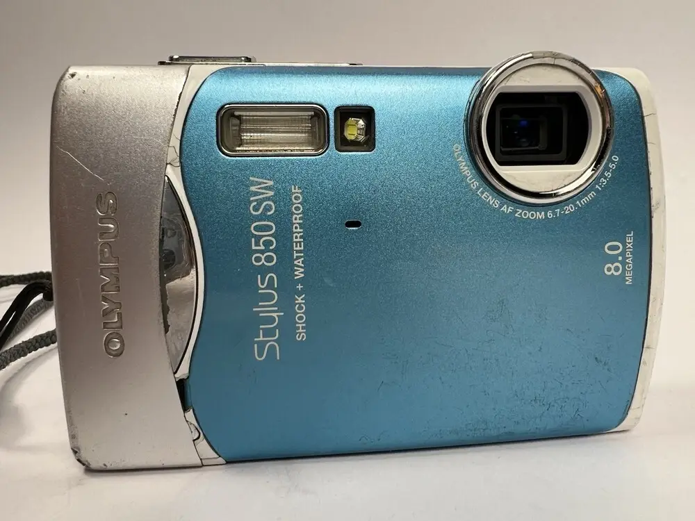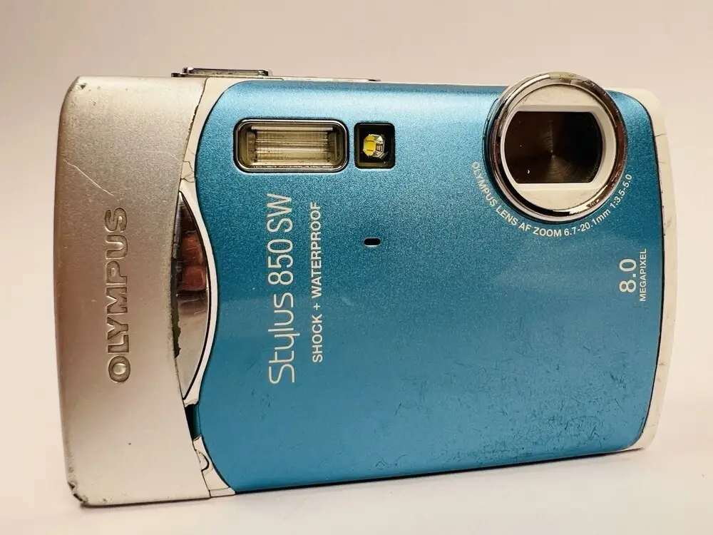 Despite its robust build, the Olympus Stylus 850 SW’s 3x optical zoom range is limited compared to some competitors, reducing its flexibility for distant subjects. The 1.5-inch LCD is relatively small by modern standards, which can make image review less comfortable and detailed. Video recording capabilities are basic, limited to low-resolution AVI format without HD support, which restricts multimedia use. The camera uses xD-Picture Card storage, a format that is less common and more expensive compared to SD cards. Its maximum ISO sensitivity of 400 limits performance in very low-light situations, potentially increasing noise. Additionally, the battery life can be relatively short when using standard AA batteries under heavy usage conditions.
