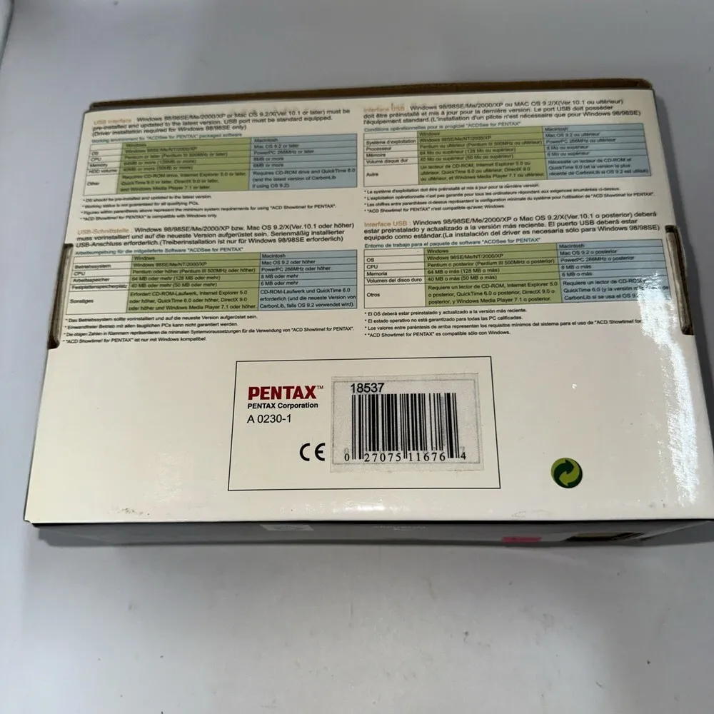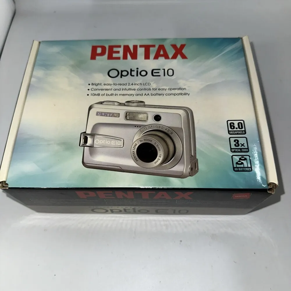 The Pentax Optio E10 is a compact digital camera that was released in 2004, featuring a 3.2 megapixel CCD sensor capable of capturing images with a resolution of 2048 x 1536 pixels. It is equipped with a fixed focal length lens with an aperture of f/2.8, providing sharp image quality for everyday photography. The camera supports JPEG image format and offers basic exposure control with program and shutter priority modes. The Optio E10 includes an optical viewfinder as well as a 1.5-inch LCD display for image preview and menu navigation. Its compact size and lightweight design make it convenient for casual users who want simple point-and-shoot operation.