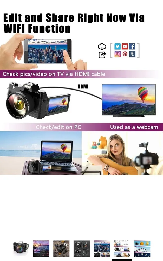 The camera lacks brand recognition, which may affect the availability of customer support and accessories. Resolution and image quality are modest, limiting professional or high-detail usage. The absence of advanced manual controls restricts creative flexibility for experienced photographers. The overall build quality and durability may be uncertain due to the unbranded nature. Feature set might be minimal, missing advanced video formats or higher frame rate options that competitors offer. Limited documentation or firmware updates could pose challenges in troubleshooting and optimizing device performance.