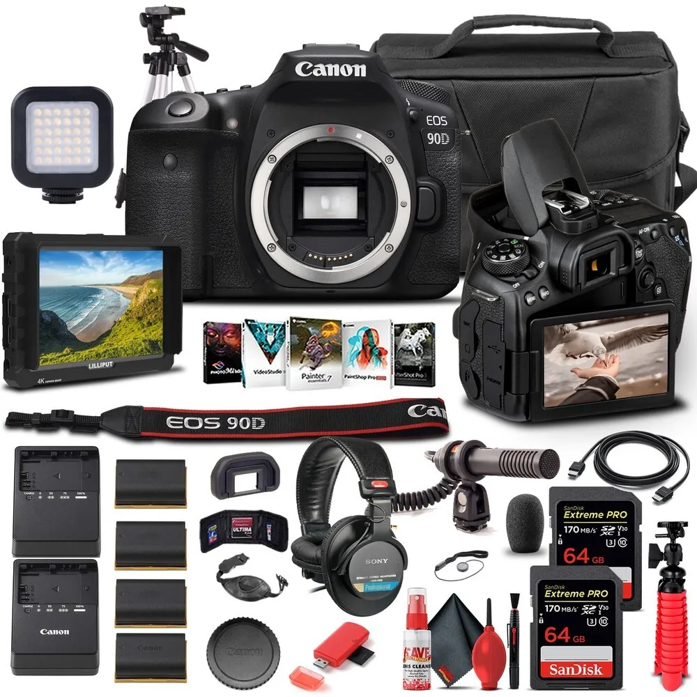 The Canon EOS 90D is a high-performance DSLR camera designed for advanced photographers and enthusiasts. It features a 32.5 megapixel APS-C CMOS sensor, enabling high-resolution image capture with excellent detail and clarity. The DIGIC 8 image processor ensures fast performance, high-speed continuous shooting up to 10 fps, and enhanced autofocus capabilities with 45 cross-type AF points. The camera supports 4K UHD video recording at 30 fps without crop, with advanced video features such as time-lapse and digital IS. Its robust body includes a vari-angle touchscreen LCD for flexible shooting angles and an optical pentaprism viewfinder. Connectivity options include built-in Wi-Fi and Bluetooth for seamless image transfer and remote control.