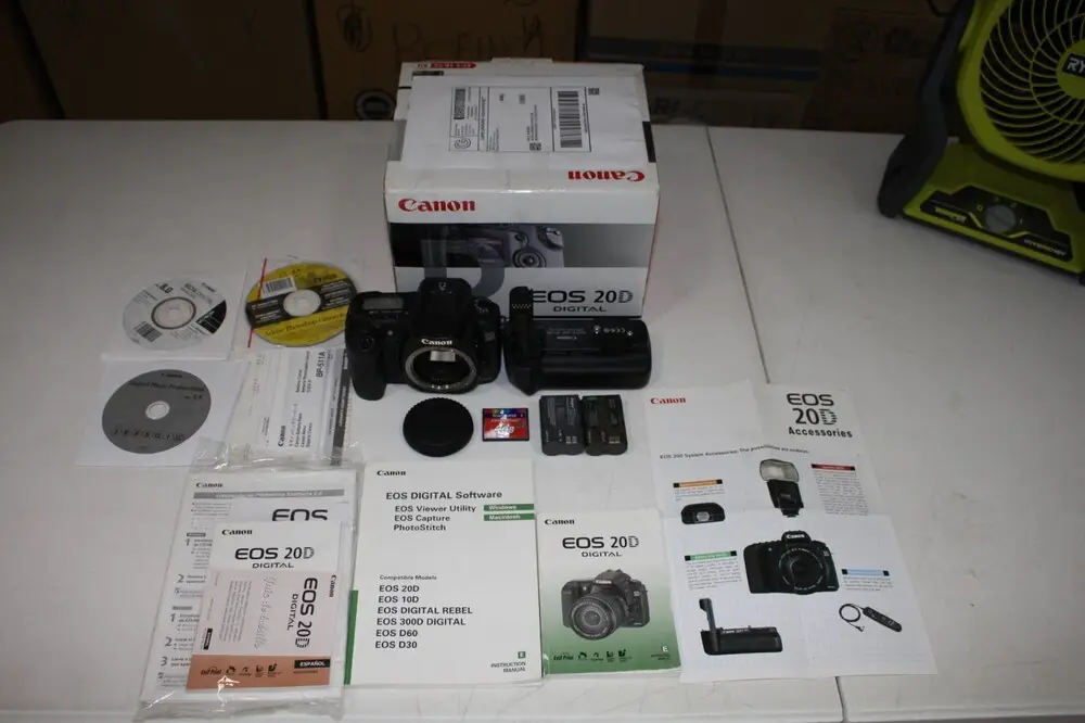 The Canon EOS 20D is a professional-grade digital SLR introduced in 2004, designed for advanced amateur photographers. It features a 8.2-megapixel APS-C CMOS sensor, providing high-resolution image capture with excellent color fidelity and low noise performance. The camera boasts a DIGIC II image processor that enhances image quality and processing speed. The EOS 20D supports a continuous shooting speed of up to 5 frames per second, catering to fast action and wildlife photography. Its rugged magnesium alloy body offers durability and reliable operation in varied shooting conditions. The camera offers compatibility with Canon EF and EF-S lenses, expanding creative possibilities.