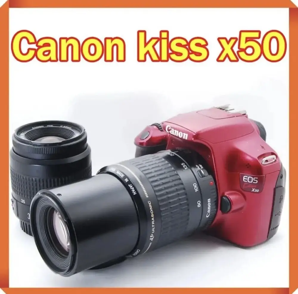 The Canon EOS Kiss X50 is a 12.2 megapixel DSLR camera that features a DIGIC 4 image processor for enhanced image quality and efficient processing. It has an APS-C sized CMOS sensor delivering high resolution and good low-light performance. The camera supports ISO sensitivity from 100 to 6400, expandable up to 12800, useful for various lighting conditions. With 9-point autofocus and an optical pentamirror viewfinder, users get precise focus and clear composition. The EOS Kiss X50 captures up to 3 frames per second in continuous shooting mode, suitable for dynamic scenes. It also includes features like Live View shooting and HD video recording at 720p resolution.