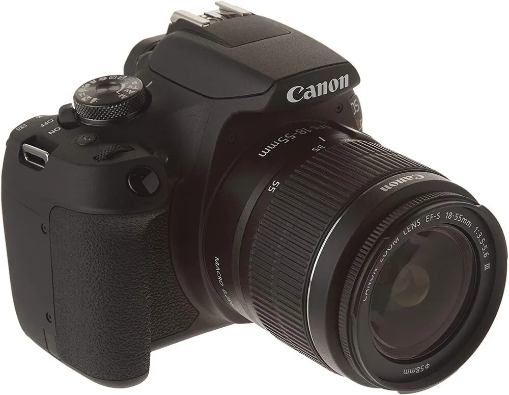 It comes with the Canon EF-S 18-55mm f/3.5-5.6 DC III lens, suitable for general photography.