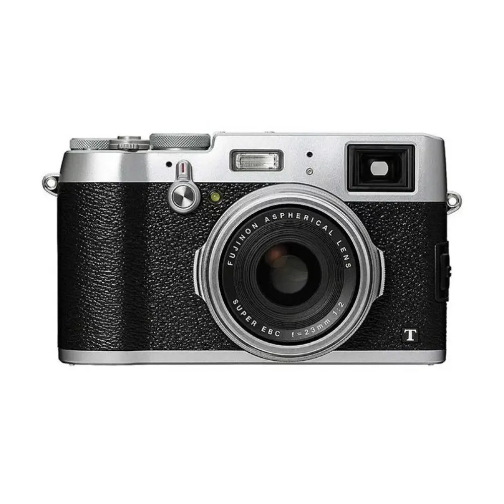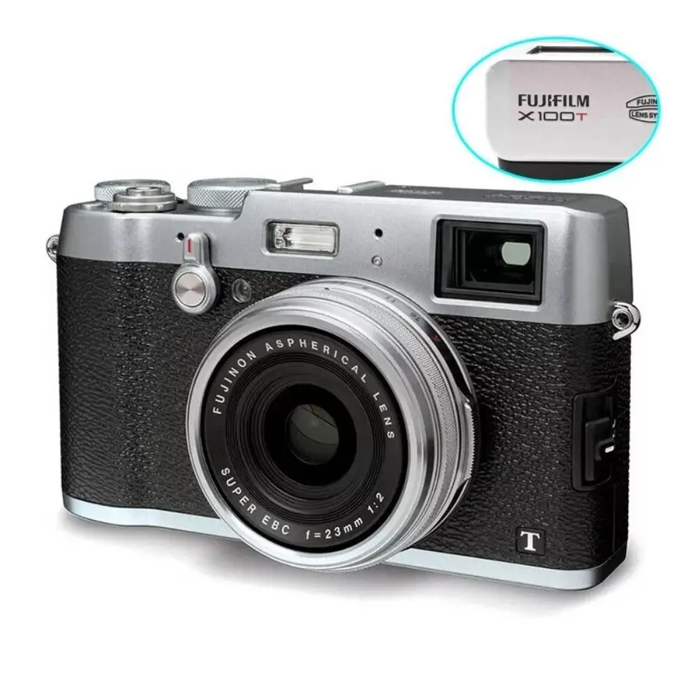The Fujifilm X100T is a premium compact digital camera released in 2014 as part of Fujifilm's X Series lineup. It features a 16.3 MP APS-C X-Trans CMOS II sensor coupled with Fujifilm's EXR Processor II, designed to deliver high-resolution images with superb color fidelity. The camera is equipped with a fixed 23mm f/2 lens, known for its sharpness and versatility in various shooting scenarios. It includes an advanced hybrid viewfinder that combines optical and electronic elements for flexible framing and focus assistance. The X100T supports high ISO sensitivity up to 51200, enabling low-light photography with reduced noise. Additionally, the camera offers manual controls and film simulation modes to emulate classic Fujifilm film characteristics.