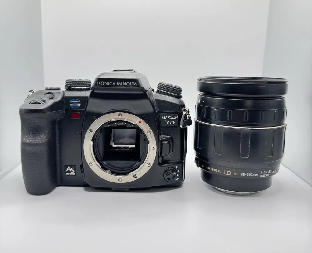 The Konica Minolta Maxxum 7D is a DSLR camera that was released in 2004. It features a 6.1-megapixel APS-C sized CCD sensor, delivering detailed images suitable for enthusiasts. The camera supports the Minolta A-mount lens system, allowing use of a wide range of lenses. It offers a high-speed autofocus system with 11 points, enhancing subject tracking and precision. The Maxxum 7D incorporates an ISO range from 100 to 1600, providing flexibility in various lighting conditions. Additionally, it provides continuous shooting at up to 3 frames per second, facilitating action and sports photography.