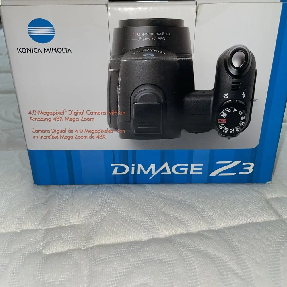 The Konica Minolta DiMAGE Z3 is a compact digital camera featuring a 3.2-megapixel CCD sensor ideal for general photography needs. It sports a 3x optical zoom lens with a focal length range equivalent to 38-114mm on a 35mm camera. The camera includes a variety of exposure modes and scene presets to accommodate different shooting conditions. It records images at a maximum resolution of 2048 x 1536 pixels and supports both JPEG and TIFF image formats. The device is powered by two AA batteries and offers a 1.5-inch LCD screen for image preview. Connectivity options include USB 1.1 for transferring images to a computer.