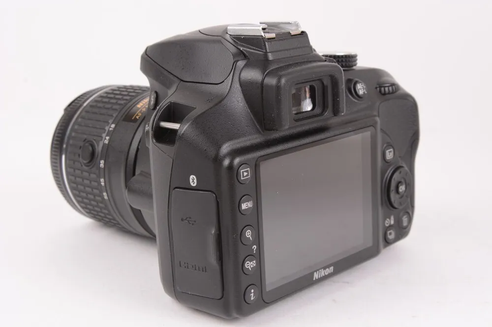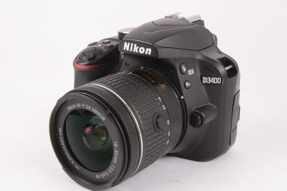 The Nikon D3400 is an entry-level DSLR camera equipped with a 24.2MP APS-C CMOS sensor designed to deliver high-resolution images with excellent detail and vibrant colors. It features Nikon's EXPEED 4 image processor, enhancing speed and image quality while maintaining low noise levels even at high ISO sensitivities up to 25600. The included AF-P DX NIKKOR 18-55mm f/3.5-5.6G VR lens incorporates Vibration Reduction technology to reduce camera shake for sharper images in low light or at slower shutter speeds. The camera supports Full HD 1080p video recording at up to 60 frames per second, with improved autofocus speed and smoothness. Connectivity is enhanced via Bluetooth Low Energy for seamless image transfer to smart devices using Nikon's SnapBridge app. Its compact and lightweight design makes it ideal for beginners seeking ease of use combined with high-quality imaging capabilities.