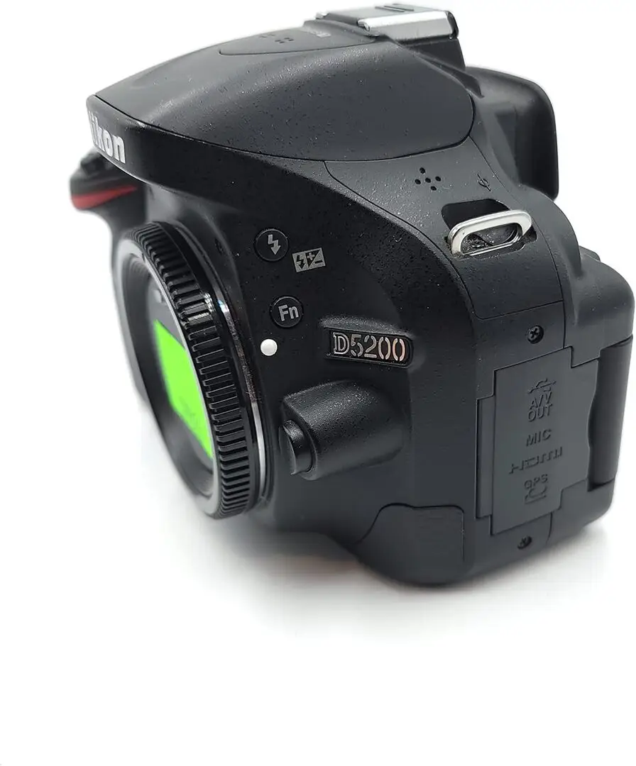The Nikon D5200 utilizes a 24.1-megapixel DX-format CMOS sensor designed for capturing high-resolution images.