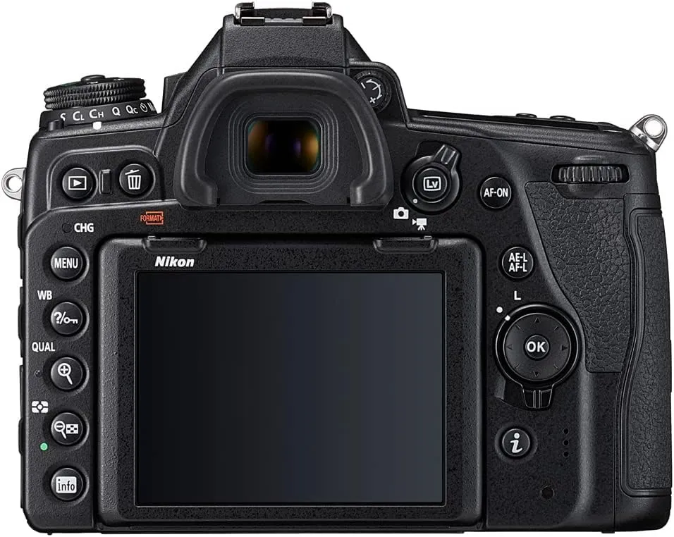 The Nikon D780 is a full-frame DSLR that features a 24.5-megapixel FX-format CMOS sensor, providing outstanding image quality and detail resolution. It combines traditional DSLR technology with modern mirrorless-style live view capabilities. Equipped with Nikon's EXPEED 6 image processor, it delivers fast performance and excellent noise reduction at high ISO levels. The autofocus system includes 51 AF points with 15 cross-type sensors for precise focusing in various lighting conditions. The D780 supports 4K UHD video recording and offers various video autofocus modes for smooth filmmaking. It also features dual memory card slots (SD and XQD/CFexpress) for flexible storage options.