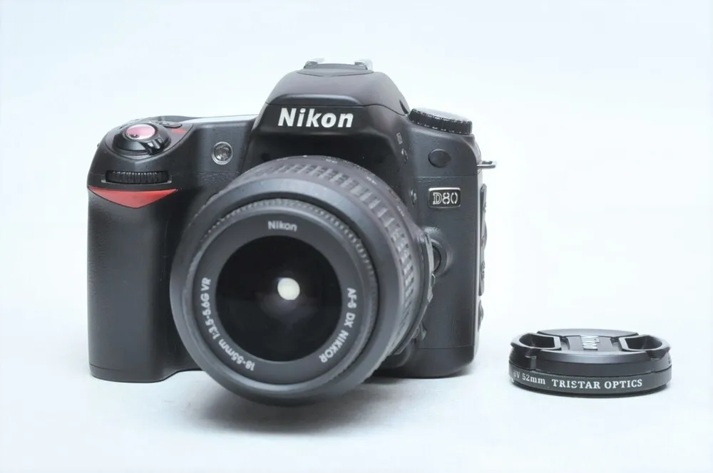 The Nikon D80 is a digital single-lens reflex camera introduced by Nikon in 2006, featuring a 10.2-megapixel DX-format CCD sensor that delivers high-resolution images. It houses the EXPEED image processing engine that enables fast performance and superior image quality. The camera includes a 3-inch LCD screen for easy image review and Live View shooting functionality. The autofocus system consists of 11 points with a dedicated autofocus sensor, ensuring sharp and precise focusing in different conditions. Shutter speed ranges from 1/4000s to 30s, providing flexibility for various photographic styles. Additionally, the D80 supports ISO sensitivity from 100 to 1600, expandable to 3200, allowing for shooting in low-light environments.