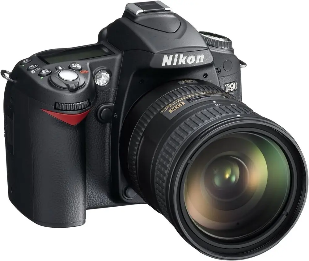 The Nikon D90 is a 12.3 megapixel DX-format DSLR camera featuring a CMOS sensor paired with Nikon's EXPEED image processing engine to deliver high-quality images with excellent detail and low noise. It utilizes a 11-point autofocus system combined with 3D tracking for accurate, fast focusing in various shooting conditions. The camera supports full 3-inch vari-angle LCD screen for live view and playback, enhancing compositional flexibility. Capable of shooting 720p HD video at 24 fps, it was one of the first DSLRs to integrate video capability. The camera body supports ISO sensitivity from 200 to 3200, expandable to 6400, aiding performance in diverse lighting environments. It offers a continuous shooting speed of up to 4.5 frames per second and stores images on SD/SDHC memory cards.