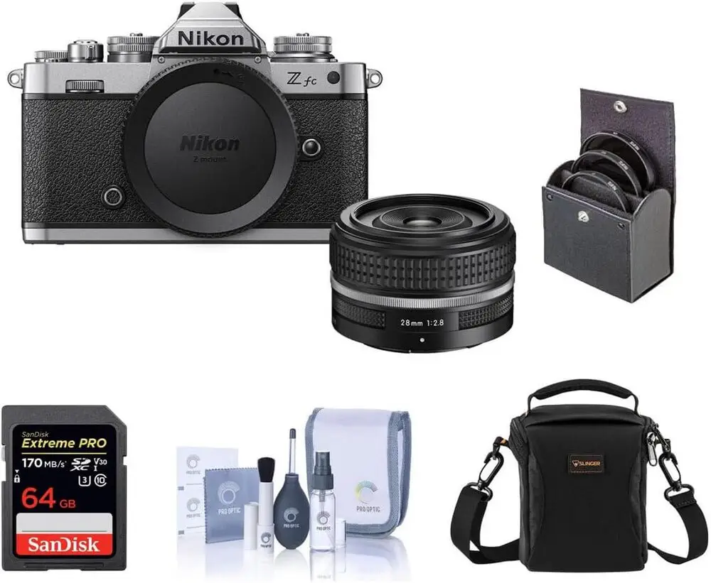 The Nikon Z fc is a compact mirrorless camera featuring a retro design inspired by Nikon's classic film cameras, integrating modern digital technology. It houses a 20.9MP APS-C (DX) CMOS sensor coupled with the EXPEED 6 image processor, enabling high-quality imaging and 4K UHD video recording capabilities. The camera supports an ISO range of 100-51200 for versatility in various lighting conditions and offers 209 focus points with hybrid autofocus technology for precision focusing. Connectivity options include Wi-Fi and Bluetooth for easy image transfer and remote control. Its construction combines magnesium alloy and carbon fiber materials, providing a durable yet lightweight body, and it includes a vari-angle touchscreen LCD for flexible shooting angles.