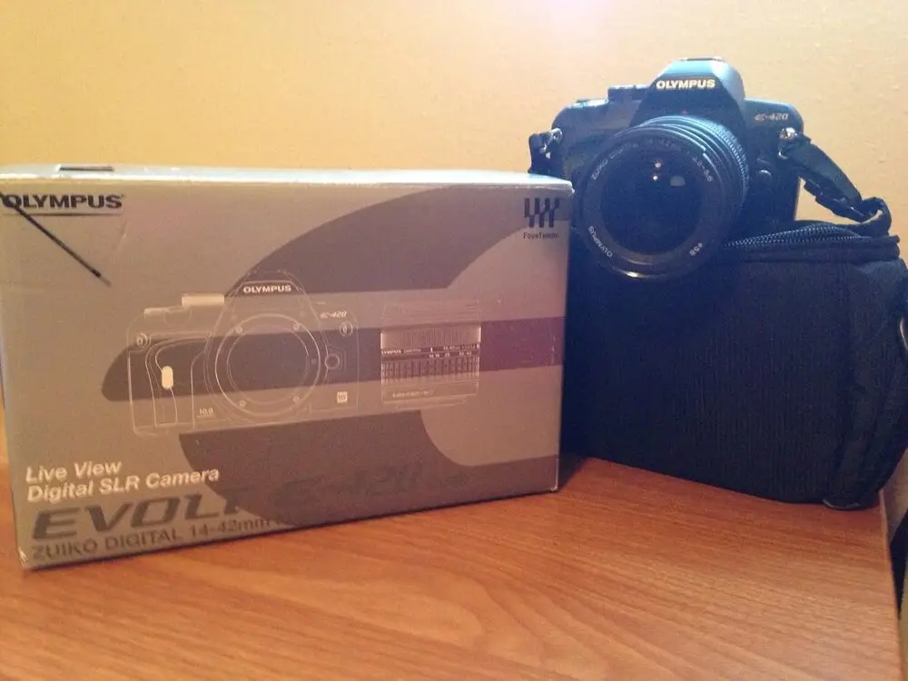 The Olympus E-420 is a compact digital single-lens reflex camera released in 2008, part of the Olympus E-series. It features a Four Thirds System sensor with a 10.0 megapixel Live MOS sensor which offers high-resolution imaging. The camera supports interchangeable lenses with a Four Thirds mount and provides a maximum resolution of 3648 x 2736 pixels. It includes a 2.7-inch LCD screen for image preview and menu navigation. The E-420 is equipped with an ISO range from 100 to 1600, expandable, and supports manual and automatic exposure control. Powered by a lithium-ion battery, it offers portability and convenience for both amateur and enthusiast photographers.