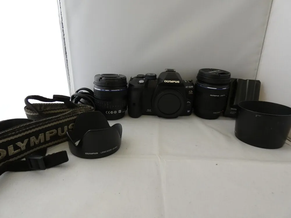 The Olympus E-520 is a 10-megapixel DSLR camera featuring a Four Thirds System sensor that delivers high image quality with enhanced noise reduction capabilities.