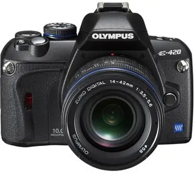 Compared to modern DSLR and mirrorless cameras, the Olympus E420 has a relatively low-resolution sensor which limits cropping and ultra-high detail needs. The autofocus system has only 3 points, which is basic compared to more advanced multi-point systems.