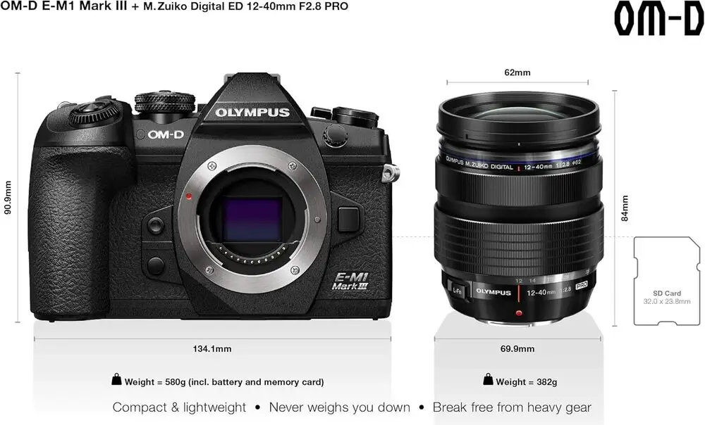 The Olympus OM-D E-M1 boasts a robust 5-axis image stabilization system that significantly reduces blur. Its advanced autofocus system ensures quick and accurate focus tracking for moving subjects. The camera's compact and lightweight design makes it highly portable for professional use. Weather-sealing provides environmental protection for shooting in harsh conditions. The high-resolution electronic viewfinder delivers a clear, lag-free preview of the shot composition. Fast continuous shooting up to 10 fps caters well to sports and action photography.