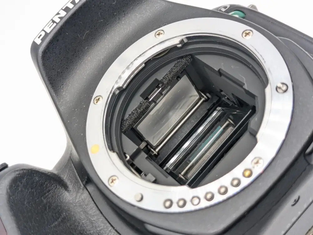 The Pentax *istd s uses a 6.1-megapixel CCD sensor with a 1.5x crop factor.